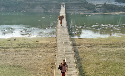 শীতের মুণ্ডেশ্বরীতে এখন এ ভাবেই চলছে পারাপার। ছবি: মোহন দাস।