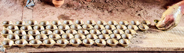 এক সময় যাঁদের হাতে তৈরি মাটির প্রদীপে ঝলমল করেছে উৎসবের আঙিনা, সেই সেই মৃৎশিল্পীদের ঘরেই এখন অন্ধকার! সৌজন্যে বৈদ্যুতিক মোমবাতি, টুনি লাইট।
