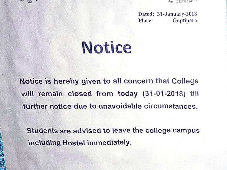 ঝোলানো হয়েছে কলেজ বন্ধের নোটিস।