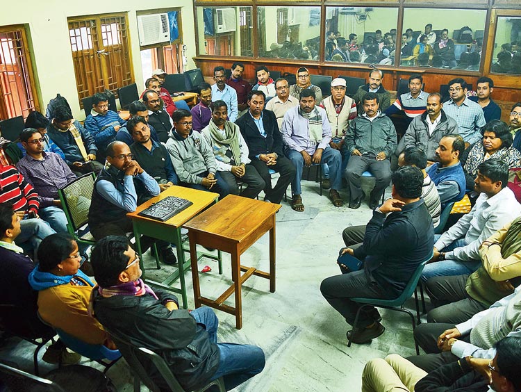 বৃহস্পতিবার কলেজে গিয়ে দেখা গেল, পাঁচ শিক্ষিকা-সহ ৬১ জন ঘেরাও হয়ে রয়েছেন। তাঁরা জানান, মঙ্গলবার থেকে ক্লাস চালুর কথা ছিল। কিন্তু কর্তৃপক্ষের কেউ যোগাযোগ রাখছেন না। ফলে ক্লাস চলবে কী ভাবে? দৈনন্দিন নানা ব্যপারে সিদ্ধান্ত নেওয়ার ক্ষমতাও তাঁদের নেই। কর্তৃপক্ষ হাল না ধরলে পড়াশোনা শুরু সম্ভব নয়।