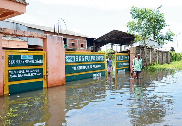 জলমগ্ন উলুবেড়িয়ার একটি কারখানা চত্বর।