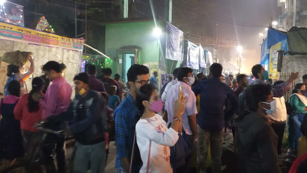 মানকুন্ডু স্টেশন রোডে প্রতি বছর মানুষের ঢল নামে ষষ্ঠী থেকেই। এ বার সপ্তমীর দিন অনেককে দেখা গেল দল বেঁধে ঠাকুর দেখতে বেরিয়েছেন। কিন্তু জ্যোতির মোড়, সার্কাস মাঠ, নতুনপাড়া, বেশোহাটা বা দৈবকপাড়া সব পুজোতেই এত দিনের সেই চেনা ছবিটা উধাও। পালপাড়া রোডে বিবিরহাট উত্তরাঞ্চল থেকে শুরু করে পালপাড়া হেলাপুকুর, বিদ্যালঙ্কা সর্বত্রই একই দৃশ্যের পুনরাবৃত্তি। কোভিড-১৯ যেন সব উৎসবকেই নতুন করে ভাবতে শিখিয়ে দিয়েছে।