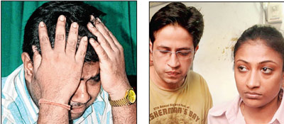 রোহিত ত্রিপাঠী ও প্রিয়াঙ্কা ভট্টাচার্য। ডোমজুড় থানায়। —নিজস্ব চিত্র