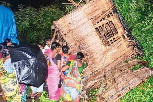 শনিবার রাতে যদুবেড়িয়ায় ৬ নম্বর জাতীয় সড়কের ধারে চোলাই ঠেক ভাঙছেন মহিলারা। ছবি: সু্ব্রত জানা
