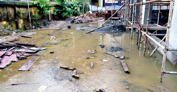 হাসপাতাল চত্বরে জমে রয়েছে জল।