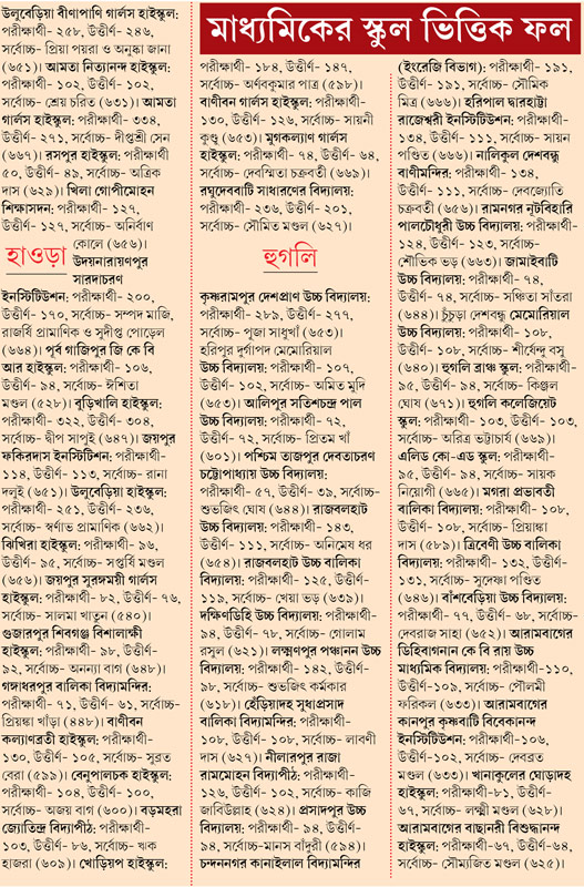 স্কুল ভিত্তিক মাধ্যমিকের ফলাফল