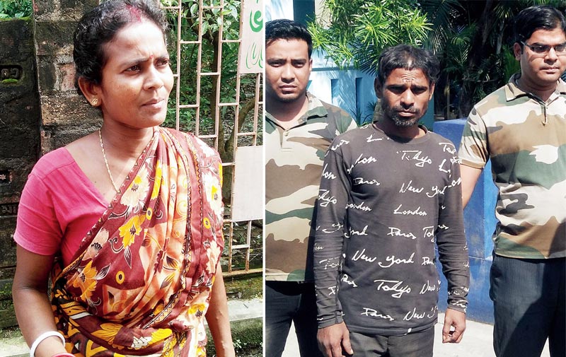অভিযুক্ত: পরিচারিকা মাধবী কর্মকার (বাঁ দিকে), চুঁচুড়া থানায় গোর্খা (ডান দিকে)।