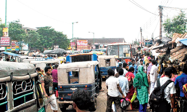 বাসস্ট্যান্ড সংলগ্ন এলাকার এই চিত্র শুধু ইদ নয় বা দুর্গাপুজোর মতো উৎসবের দিনেই নয়, দেখা যায় বছরভর। উৎসবের দিনে সেই যানজট কিছুটা বাড়ে, এই যা তফাত।