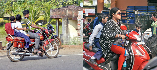 হেলমেট ছাড়াই স্কুলের পথে।