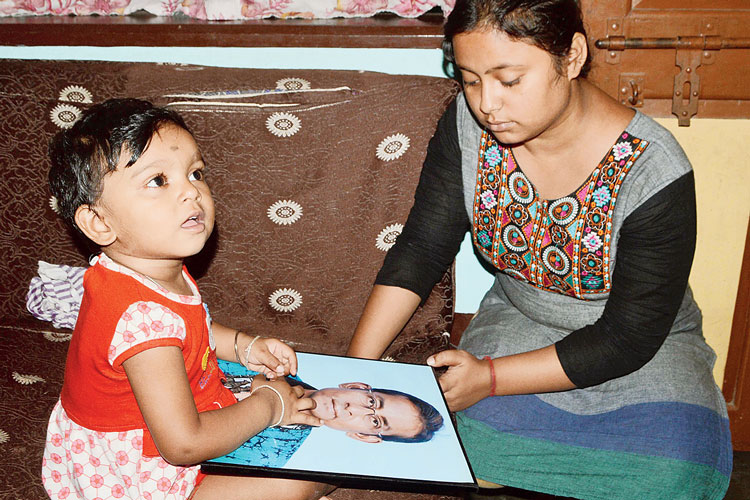 আর তাঁর বাড়িতে ঘুরে বেড়ায় দেড় বছরের আর এক মেয়ে। ঘরময় ঘুরে ঘুরে খুঁজে বেড়ায় ‘দাদা’কে। ঠাকুরদার ছবি এনে দিলে ছোট্ট দু’হাতে আঁকড়ে ধরে মুখে নেয় বোতল। দুধ, লেবুর রস খেয়ে ফেলতে সময় লাগে না আর।