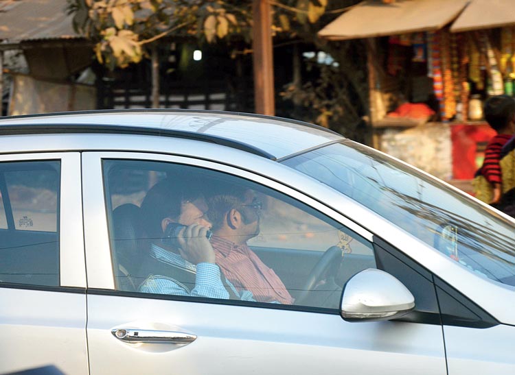 অসচেতন: পুলিশের নির্দেশ উড়িেয় ফোনে কথা বলতেই গাড়ি চালাতে ব্যস্ত চালক। ৬ নম্বর জাতীয় সড়কে। নিজস্ব চিত্র