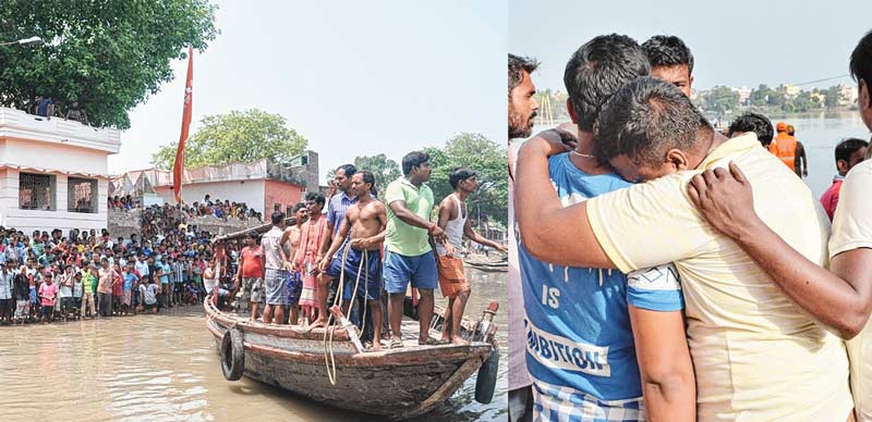 শোকস্তব্ধ: তখন জোর কদমে চলছে উদ্ধার কাজ, পরিজনের মৃত্যুর খবর পেয়ে কান্না। ছবি: তাপস ঘোষ ও দীপঙ্কর দে