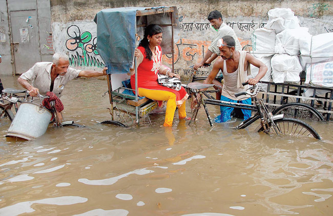 সোমবার সারা দিনের বৃষ্টিতে কার্যত জলবন্দি হয়ে পড়েছে গোটা হাওড়া শহর। প্রায় একই ছবি গঙ্গার অপর পাড়ে বরাহনগরেও। এ দিন সকালেও যার জেরে ভুগতে হয়েছে মানুষকে। বিভিন্ন রাস্তায় জমা জলের কারণে দশ মিনিটের পথ যেতে সময় লেগেছে আধ ঘণ্টা। কোথাও আবার ঘরের ভিতরে জল ঢুকে যাওয়ায় খাটের উপরেই পাততে হয়েছে সংসার। হাওড়ার জায়সবাল, সত্যবালা হাসপাতাল, লিলুয়া থানার ভিতরেও ঢুকে গিয়েছে জল। তবে এ দিন বিকেল থেকে দুই পুরসভারই কয়েকটি এলাকায় দ্রুত জল নামতে শুরু করেছে বলেই দাবি হাওড়া ও বরাহনগরের পুর-কর্তাদের।