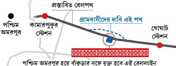 এ দিন ভাবাদিঘিকে ঘিরে এই গোলমালে রেলকর্তাদের কপালে দুশ্চিন্তার ভাঁজ পড়লেও অমরপুর নিয়ে তাঁরা কিছুটা স্বস্তি পেয়েছেন। এই রেল প্রকল্পে ভাবাদিঘি ছাড়াও গোঘাটের অমরপুর মৌজায় জমি অধিগ্রহণ নিয়ে জট রয়েছে। কিছু অনিচ্ছুক চাষি এখনও ক্ষতিপূরণের চেক নেননি। এ দিন ব্লক অফিসে ডাকা শুনানিতে ওই চাষিরা কিছু শর্তের বিনিময়ে রেলপথ নির্মাণে সহযোগিতার আশ্বাস দিয়েছেন বেল প্রশাসনের কর্তাদের দাবি। অতিরিক্ত জেলাশাসক (ভূমি ও ভূমি সংস্কার) পূর্ণেন্দু মাজি বলেন, ‘‘জমির দাম বাড়ানোর দাবি ছিল আনিচ্ছুকদের। তাঁদের বোঝানো হয়েছে তা সম্ভব নয়। আগামী ২৬ মার্চ তাঁদের চেক দেওয়া হবে। রেলপথের কারণে নিকাশি ব্যবস্থা-সহ কিছু সমস্যার সুরাহা দাবি করেছেন তাঁরা। সেগুলি আমরা দেখব।’’ শুনানির পরে আন্দোলনকারীদের পক্ষে ‘রেল চালাও, গ্রাম বাঁচাও কমিটি’র সম্পাদক ফটিক কাইতি বলেন, ‘‘আলোচনা হয়েছে। সব সমস্যার সমাধান না হলেও কিছু ক্ষেত্রে দাবি পূরণের আশ্বাস মিলেছে।’’