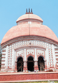 শেষ দিকে মন্দির সংস্কারের কাজ। নতুন সাজে বৃন্দাবন মন্দির।