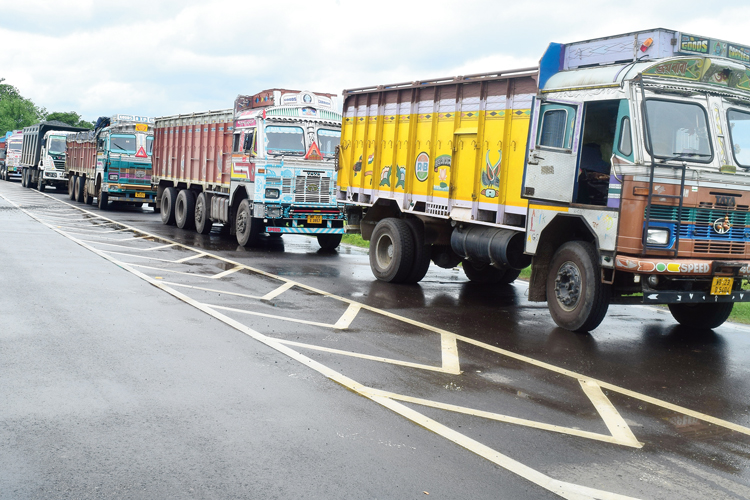 থমকে: সভার জেরে শুক্রবার রাত থেকে বৈঁচির কোচমালিতে নো-এন্ট্রিতে আটকে ট্রাক।