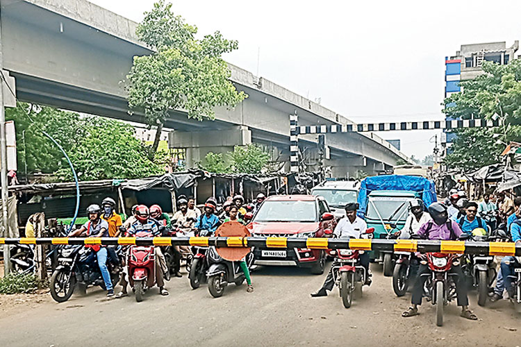 লেভেল ক্রসিংয়ে গাড়ির ভিড়। ছবি: দীপঙ্কর দে