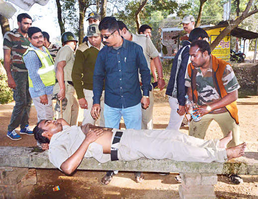 বেলা দেড়টা নাগাদ স্বপনবাবু এবং পঞ্চায়েত সমিতির সভাপতি সুমনা ঘোষের নেতৃত্বে একটি মিছিল আসে। তখন ওই গোষ্ঠীর ছেলেরা কলেজে ঢোকেন। অভিযোগ, সেই সময় উত্তম ঘনিষ্ঠ এক তৃণমূল কর্মীর নেতৃত্বে একদল ছেলে বোমাবাজি শুরু করে। পুলিশকে লক্ষ করে বোমা ছোড়া হয়। তবে, তাতে পুলিশের কেউ জখম হননি। গোটা এলাকা বোমার ধোঁয়ায় ঢেকে যায়। পুলিশের সঙ্গে হামলাকারীদের ধস্তাধস্তি হয়। বেগতিক বুঝে পুলিশ লাঠি উঁচিয়ে হামলাকারীদের তাড়া করে। কাঁদানে গ্যাসের শেল ছোড়ে। একাধিক পুলিশকর্মীকে দেখা যায়, বন্দুক উঁচিয়ে ধরতে। এই অবস্থায় হামলাকারীদের কেউ কেউ স্থানীয় তৃণমূল কার্যালয়ে ঢুকে পড়ে।