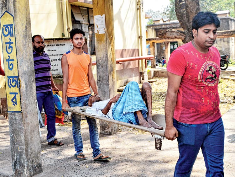 বেশ কয়েকদিন চিকিৎসার পরে এ দিন হাসপাতাল থেকে ছাড়া পান মাখলার বৃদ্ধ দেবাশিস বিশ্বাস। ছেলে জয়ন্ত বাবাকে বাড়ি নিয়ে যেতে এসেছিলে। অশক্ত শরীরে দেবাশিসবাবু হাঁটতে পারছিলেন না। জয়ন্তই বাবার ট্রলি ঠেলে গাড়ির কাছে নিয়ে যান। জয়ন্ত বলেন, ‘‘পরিস্থিতি তো দেখছেন। এখানে কাকে কী বলব? নিজেকেই সব করতে হচ্ছে।’’ এক রোগীকে দেখা গেল স্যালাইনের বোতল নিজেই নিয়ে চলেছেন শৌচাগারে। এমন উদাহরণ আরও রয়েছে।