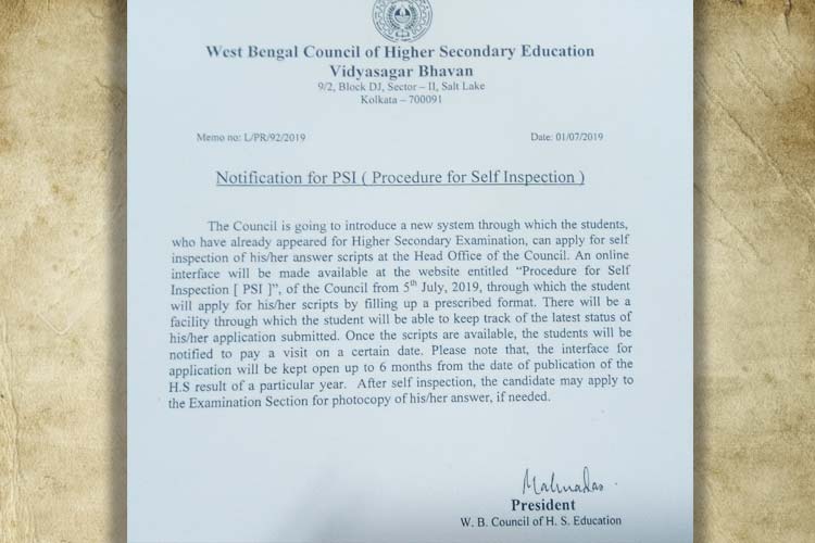 এ বিষয়ে নিজেদের ওয়েবসাইটে মঙ্গলবার নোটিস জারি করে ‘প্রসিডিওর ফর সেল্ফ ইনস্পেকশন’-এর সবিস্তার তথ্য জানিয়েছে উচ্চ শিক্ষা সংসদ। তাতে জানানো হয়েছে, যাঁরা ২০১৯ সালে উচ্চমাধ্যমিক পরীক্ষা দিয়েছেন, তাঁরা আগামী ৫ জুলাইয়ের পর অনলাইনে পরীক্ষার খাতা দেখার আবেদন করতে পারবেন। এমনকি প্রয়োজনে নির্দিষ্ট বিষয়ের খাতার ফোটোকপি পাওয়ার জন্যও আবেদন করা যাবে বলে সংসদ জানিয়েছে।