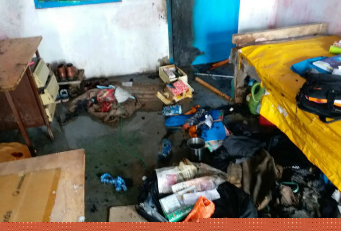 পেডং-এ পুলিশ ফাঁড়ি জ্বালিয়ে দেওয়া হল। —নিজস্ব চিত্র।