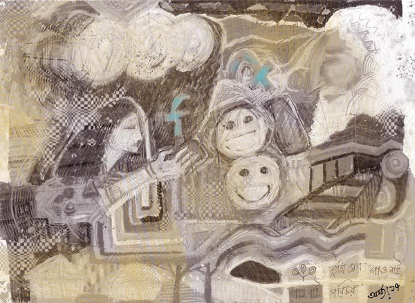 মেসেজ এল খটখট করে। আবার বাংলায় টাইপ করা অক্ষরে, ‘আমি তোমাদের রবীন্দ্রনাথ ঠাকুর।’ আমি কী লিখব তার উত্তরে ভেবে না পেয়ে বললাম, ‘আপনাকে ওয়েলকাম ফেসবুকে।’