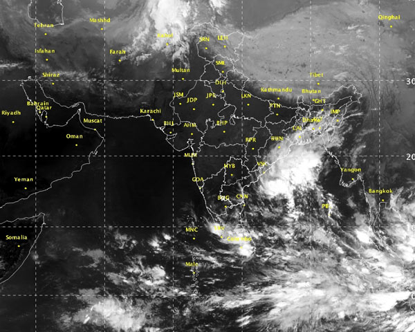 উপগ্রহ থেকে তোলা বঙ্গোপসাগরের ছবি। সময়: ৩রা নভেম্বর, সন্ধে ৬:৩০। ছবি: আইএমডি, ভারত সরকার।