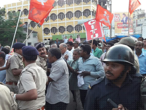 • যাদবপুরে পুলিশের সঙ্গে ধর্মঘটীদের বচসা।