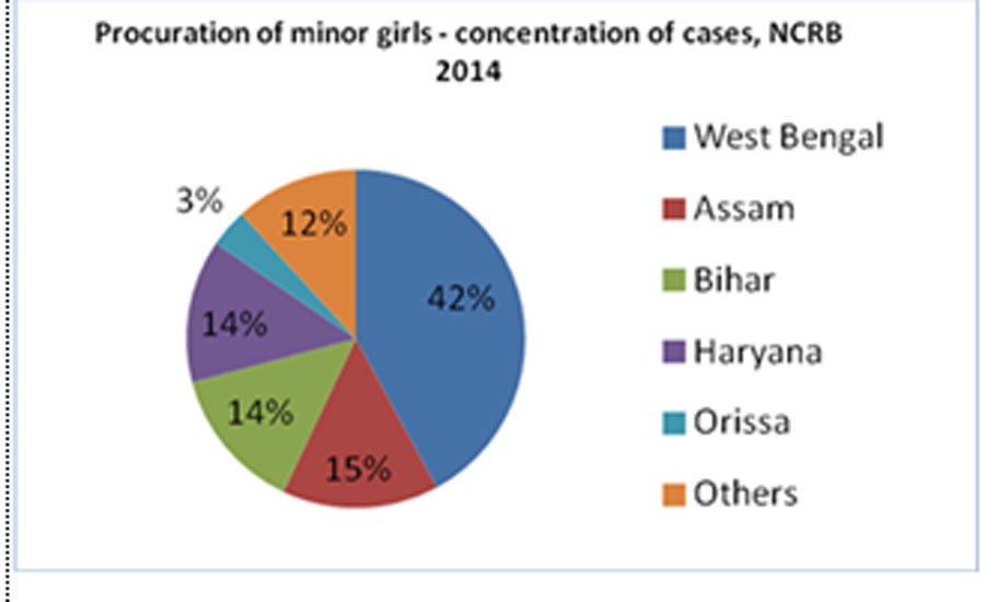 পশ্চিমবঙ্গের ক্ষেত্রে এই হিসেবটা আরও ভয়াবহ। আরও মারাত্মক। ২০১৪-র হিসেব বলছে, এ রাজ্যের নিখোঁজ শিশুদের মধ্যে ৭০ শতাংশই কন্যাশিশু। এখানেই শেষ নয়। এনসিআরবি-র তথ্য আরও জানাচ্ছে, যৌন পেশায় নিয়োগের জন্য কিশোরী-পাচারের ঘটনায় সারা দেশে এগিয়ে থাকা রাজ্যগুলোর মধ্যে রয়েছে পশ্চিমবঙ্গ, অসম, বিহার ও ওড়িশা।