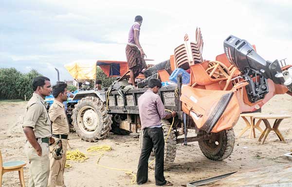 বাজেয়াপ্ত করা হচ্ছে প্যারাগ্লাইডিংয়ের সরঞ্জাম। রবিবার মন্দারমণিতে।