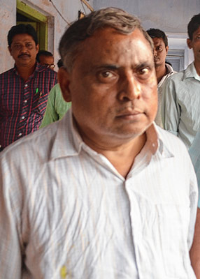 সিআইডি নিয়ে যাচ্ছে বিমল অধিকারীকে। ইনসেটে, তার ঠাকুরপুকুরের বাড়ি। নিজস্ব চিত্র।