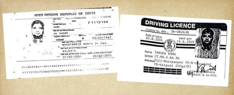 কলকাতায় গ্রেফতার হওয়ার পর তনভিরের কাছ থেকে উদ্ধার হওয়া ভারতীয় পাসপোর্ট এবং ড্রাইভিং লাইসেন্স পায় সিআইডি। ছবি: সংগৃহীত।