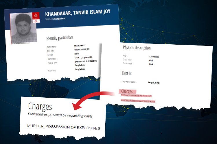 ইন্টারপোলের জারি করা ‘রেড কর্নার নোটিস’।গ্রাফিক: শৌভিক দেবনাথ।