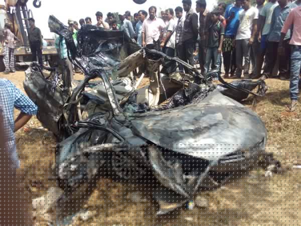 কালিকাপ্রসাদের দুর্ঘটনাগ্রস্ত গাড়ি।—নিজস্ব চিত্র
