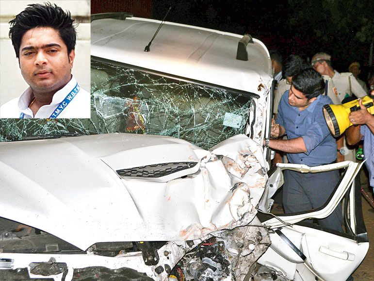 দুর্ঘটনার পর অভিষেকের গাড়ি।—নিজস্ব চিত্র