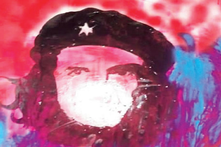 রং মাখিয়ে দেওয়া হয়েছে চে গেভারার ছবিতে। নিজস্ব চিত্র