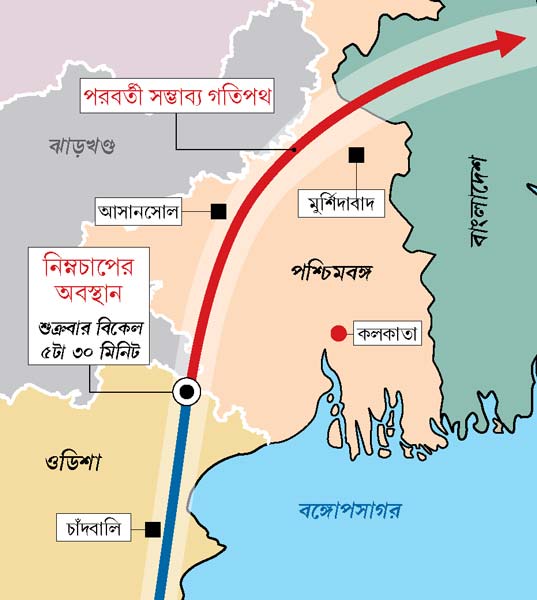 কেন্দ্রীয় আবহবিজ্ঞান দফতরের ডেপুটি ডিরেক্টর জেনারেল (পূর্বাঞ্চল) সঞ্জীব বন্দ্যোপাধ্যায়ের ব্যাখ্যা, নিম্নচাপটি সাগর থেকে খুব বেশি দূরে থাকছে না। ফলে সে ক্রমাগত জলীয় বাষ্পের জোগান পাচ্ছে। তার ফলেই ক্রমাগত বৃষ্টি ঝরাচ্ছে নিম্নচাপটি। তিনি বলেন, ‘‘নিম্নচাপটি সরে গেলেই বৃষ্টির দাপট কমবে। আজ, শনিবার দক্ষিণবঙ্গে শুধু নদিয়া ও মুর্শিদাবাদে জোরালো বৃষ্টির সম্ভাবনা রয়েছে। উত্তরবঙ্গের কোনও কোনও জায়গায় ভারী বৃষ্টির আশঙ্কা রয়েছে।’’