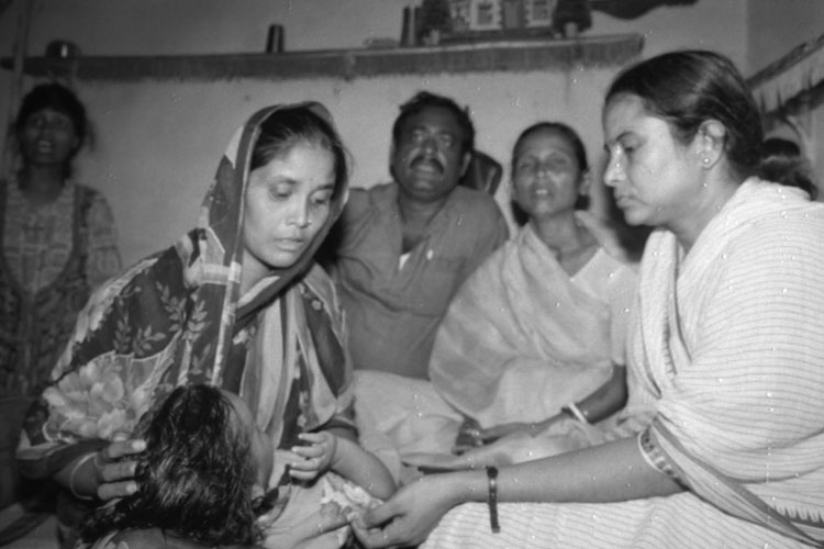 নিখোঁজ চটকল শ্রমিক ভিখারি পাসোয়ানের বাড়িতে মমতা বন্দ্যোপাধ্যায়।—ফাইল চিত্র।