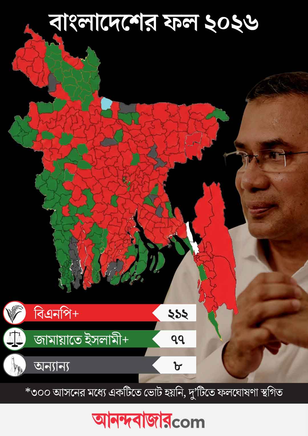 পশ্চিমবঙ্গ এবং বাংলাদেশের সীমান্তবর্তী এলাকায় জামাতের উত্থানকে বিহারের ‘সীমাঞ্চলে’র পরিস্থিতির সঙ্গে তুলনা করতে শুরু করল বিজেপি। এমনিতে উত্তর ২৪ পরগনা লাগোয়া বাংলাদেশের সাতক্ষীরা, ঝিনাইদহের মতো এলাকা অনেক বছর ধরেই জামাতের শক্ত ঘাঁটি। মানচিত্রে মধ্যবঙ্গের সমান্তরালে অবস্থিত রাজশাহীতেও জামাতের প্রভাব বাড়ছিল। শুক্রবার প্রকাশিত বাংলাদেশ নির্বাচনের ফলাফলে দেখা যাচ্ছে, সে প্রভাব বেড়েছে। পশ্চিমবঙ্গের সীমান্ত বরাবর বাংলাদেশের উত্তর থেকে দক্ষিণ পর্যন্ত যত আসন, তার সিংহভাগেই জয়ী হয়েছে জামাতের জোট।