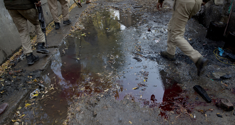 ঘটনাস্থলে এখনও পড়ে রয়েছে রক্ত। ছবি: এপি।