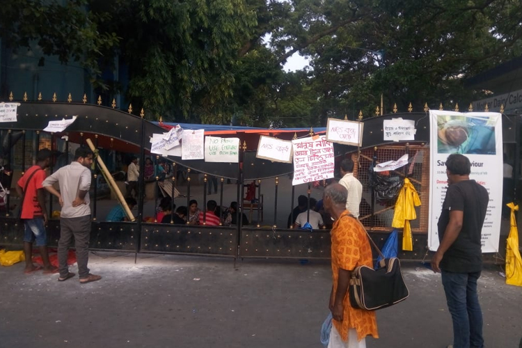 নিজেদের অবস্থানে অনড় এনআরএসের জুনিয়র ডাক্তাররা। নিজস্ব চিত্র