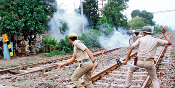 এই ঘোষণায় ঘি পড়ে আগুনে। যে-সব পুরুষ যাত্রী হাঙ্গামায় যোগ দেননি, তাঁদেরও অনেকে রে-রে করে ছুটে যান। ট্রেন না-পেয়ে দীর্ঘ ক্ষণ আটকে থেকে তাঁরা এমনিতেই তেতে ছিলেন। মারমুখী হয়ে উঠে তাঁরাও মহিলাদের উপরে চড়াও হন। পুলিশ কম থাকায় প্রথমে পুরুষদের ঠেকানো যাচ্ছিল না। শুরু হয়ে যায় ইটবৃষ্টি। অবস্থা আয়ত্তে আনতে আসে জেলা পুলিশের র্যাফ ও কমব্যাট বাহিনী। তারা প্রথমে লাঠি চালায়। তার পরে ৭-৮ রাউন্ড কাঁদানে গ্যাসের শেল ফাটায়। রেলের ওই সিদ্ধান্ত ভাল না মন্দ, সেটা বিতর্কের বিষয়। কিন্তু এ দিন বেশির ভাগ যাত্রী ছিলেন অবরোধের বিপক্ষে। ট্রেন না-পেয়ে ক্ষুব্ধ জনতা বিক্ষোভকারীদের প্রায় ঘিরে ফেলে আক্রমণ হানতে উদ্যত হয়। র্যাফ লাঠি চালিয়ে তাদের ছত্রভঙ্গ করে দেয়।