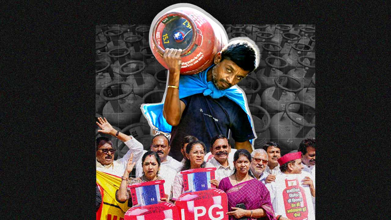 সংসদের মকর দ্বারের সামনে বিক্ষোভ দেখান বিরোধী সাংসদেরা। কংগ্রেস, তৃণমূল ছাড়াও সমাজবাদী পার্টি (এসপি), ডিএমকে-র সাংসদেরা বিক্ষোভে শামিল হন। মহিলা সাংসদেরা উনুনে রান্না করার ভঙ্গিতে প্রতীকী প্রতিবাদ দেখান। স্লোগান ওঠে, ‘মোদীজি, কোথায় গেল এলপিজি?’