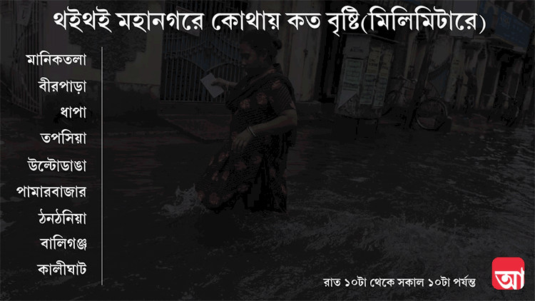 কলকাতা পুলিশ সূত্রে খবর, বুধবার রাতভর এবং বৃহস্পতিবার সকাল থেকে বৃষ্টিপাতের জেরে সেন্ট্রাল অ্যাভিনিউ, পার্ক সার্কাস, রাজারহাট, খিদিরপুর, দমদম আন্ডারপাস এবং পাতিপুকুর আন্ডারপাসে জল জমে গিয়েছে। যান চলাচলে সমস্যা হচ্ছে। দুর্ভোগে পড়েছেন অফিস যাত্রীরা। রাজারহাটে অনেক বাড়িতেও ঢুকেছে জল। সকালেও সেই জল না নামায় বাসিন্দারা নিকাশির দাবিতে পথ অবরোধ করেন বলে অভিযোগ।