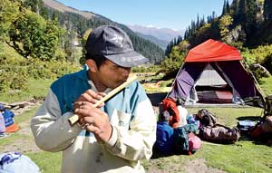বাইরের জগতের সঙ্গে ওদের যোগাযোগ বাড়াতেই সংগঠনটি গত কয়েক বছর ধরে আয়োজন করছে নেচার স্টাডি, রক ক্লাইম্বিং, ট্রেকিং ইত্যাদি। দু’বছর আগে ওরা বেরিয়েছিল পর্বত অভিযানে। ৩৫ জনের দলে ১২ জন শারীরিক প্রতিবন্ধী, ৭ জন সম্পূর্ণ দৃষ্টিহীন, ৪ জন প্রায় অন্ধ আর এক জন মূক-বধির। গন্তব্য হিমাচল প্রদেশ। প্রবীণ পর্বতারোহী ইন্দ্রনাথ মুখোপাধ্যায়ের পরিকল্পনায়, তাঁর ও দেবব্রত মুখোপাধ্যায়ের তত্ত্বাবধানে অভিযান কলকাতা থেকে মানালি হয়ে জিসপা, সেখান থেকে বারলাচাল হয়ে ভরতপুর। ওদের অভ্যস্ত করতেই এই যাত্রাপথ। ওরাও মানিয়ে নিয়েছিল নিজেদের। ১৬ হাজার ফুট উচ্চতায় উঠেছিল পাপ্পু আর নমিতা। নমিতার কথায়, ‘প্রথম দিকে একটু ভয় ভয় করছিল। তার পর দড়ি ধরে ক্রমশ উঠে গেছি।’ এই পুরো অভিযানের ছবি ক্যামেরাবন্দি করেন রাজা অভিমন্যু। ১ জুলাই গ্যালারি গোল্ডে সেই সব ছবি নিয়েই শুরু হচ্ছে একটি প্রদর্শনী ‘এক্সপিডিশন নম্বর ওয়ান’ (৬ জুলাই পর্যন্ত, রোজ ৪-৮টা)। ছবির বইটি, আ ডে অ্যাট জিসপা-ও প্রকাশিত হবে সেখানেই। সঙ্গে তারই ছবি।