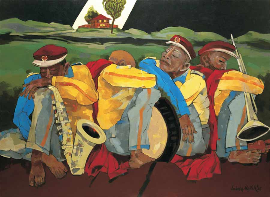 চিত্রচর্চাজীবনের গোড়ার দিকেই তাঁর প্রতিভা নজর কেড়েছিল বিশিষ্ট শিল্পী মকবুল ফিদা হুসেনের। অশোক মল্লিকের ছবিতে যে মানব, মানবক ও অ-মানব অবয়বগুলি দেখা যায় অহরহ, আর তাদের চিত্রণে ধরা থাকে চিত্রশিল্পীর যে একান্ত নিজস্ব তত্ত্ব ও দর্শনের স্বাক্ষর, তা-ই কি সেই গুণগ্রাহিতার কারণ? বাঙালি এই চিত্রশিল্পী তার পর পেরিয়ে এসেছেন কয়েকটি দশক, তাঁর ছবির রূপ-রূপক-রূপকল্প ক্রমশ ধ্যানগর্ভ ও জটিল হয়েছে আরও, তবে মূলের সেই চিত্রদর্শন নিহিত আজও, এখনও। শিল্পী অশোক মল্লিকের বিংশতিতম একক চিত্রপ্রদর্শনী শুরু হচ্ছে আজ থেকে অ্যাকাডেমি অব ফাইন আর্টস-এ, উদ্বোধনে রুবি পালচৌধুরী প্রণবরঞ্জন রায় প্রমুখ গুণিজন। ৯ নভেম্বর পর্যন্ত দেখা যাবে, রোজ দুপুর ৩টে থেকে রাত ৮টা। সঙ্গের ছবিটির শিরোনাম ‘ওয়েটিং ফর মর্নিং’।