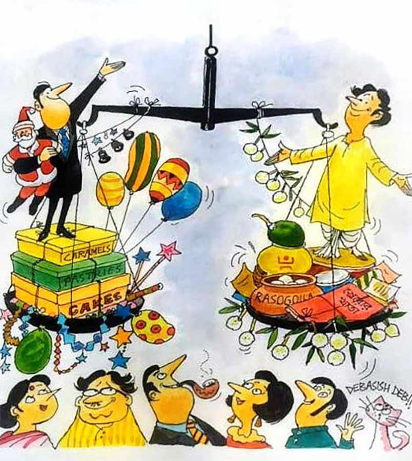 পাতা জুড়ে অনেক মুখ। মাফলার-জড়ানো ভদ্রলোক, মুখরা কাকিমা, অবাক অথবা বিরক্ত হয়ে তাকিয়ে থাকা বেড়াল! দেখলেই চেনা যায়, দেবাশীষ দেবের আঁকা ছবি: জীবনের সহজ-সরল রসে টইটম্বুর। ৮ নভেম্বর এই লেখক-চিত্রকরের ৭০তম জন্মদিন, সেই উপলক্ষে দক্ষিণ কলকাতার রিড বেঙ্গলি বুক স্টোর তাদের বই-বিপণিতে ১-৯ নভেম্বর আয়োজন করেছে প্রদর্শনী, ‘সত্তরে দেবাশীষ দেব’। থাকবে শিল্পীর প্রচুর ‘অরিজিনাল’ কাজের খসড়া, সঙ্গে ছোট-বড় নানা স্কেচ (ছবি)। শিল্পীর নিজস্ব আঙ্গিক-স্বাক্ষর ধরে রেখেছে, এমন নানা কাজের ও শৌখিন জিনিসও থাকবে: কফি মগ, ফ্লাস্ক, ব্যাগ, টি-শার্ট, কোস্টার। প্রদর্শনীর শেষ দিন প্রকাশিত হবে বই ক্যারিকেচার এবং কিছু কথা (প্রকা: ভাষা ক্রিয়েটিভস): মৃণাল সেন থেকে মেরিলিন মনরো, সত্যজিৎ রায় থেকে গুন্টার গ্রাস, শিল্পীর রঙ্গচিত্রে। সঙ্গে টুকরো স্মৃতিলেখ, ক্যারিকেচার নিয়ে শিল্পীর নিবন্ধ— এ যাবৎ অপ্রকাশিত।