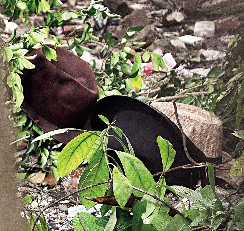 বাগানে ফেলে দেওয়া হয়েছে এই তিনটি টুপি। নিজস্ব চিত্র