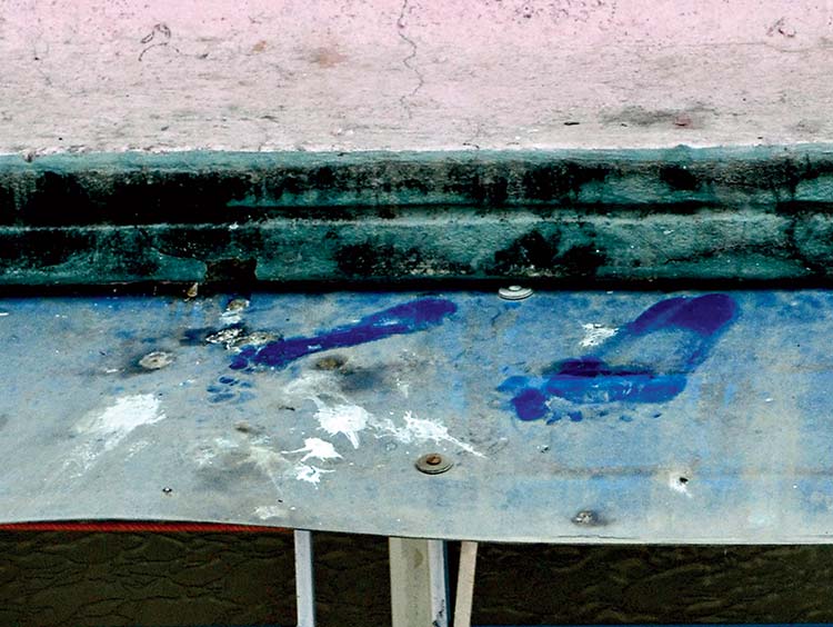 কার্নিসে স্পষ্ট তাঁর পায়ের ছাপ। শনিবার, নাগেরবাজারে। —নিজস্ব চিত্র।
