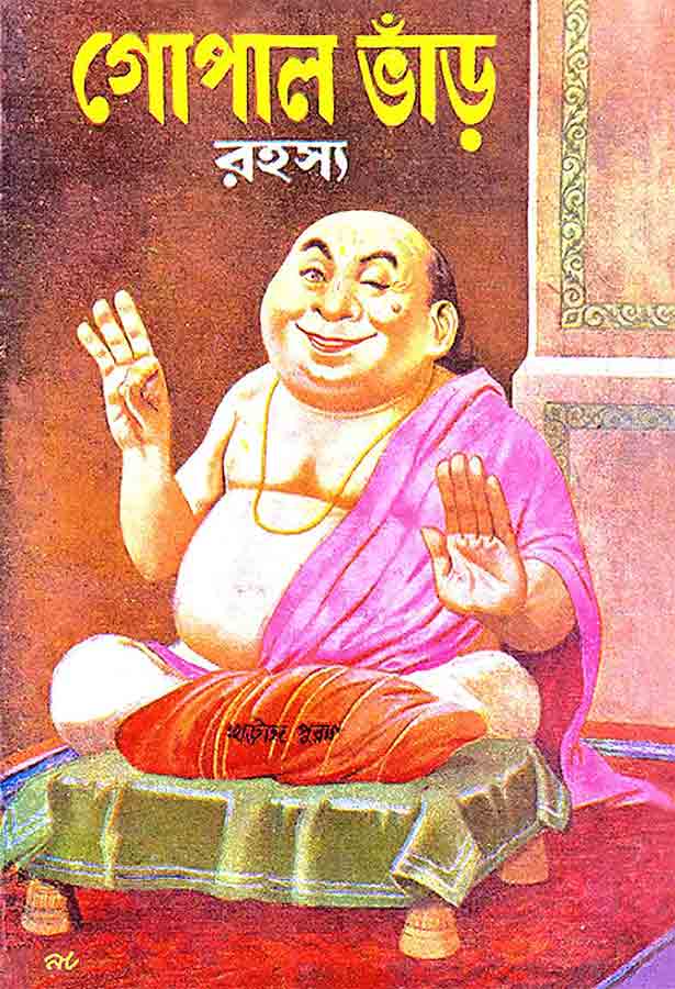 বটতলায় পাওয়া যেত গোপাল ভাঁড়কে নিয়ে হরেক বই, দেদার বিক্রি হত পথেঘাটে। কালের নিয়মে তাতে মেশে বেনোজল: ভূতপ্রেত, অবাস্তব-অবান্তরেরা। সত্তর দশকে প্রকাশক মহেশ গুপ্ত চেয়েছিলেন যথাযথ সঙ্কলন, সম্পাদনা ও অলঙ্করণে সাজিয়ে গোপাল ভাঁড় ‘সমগ্র’ বার করতে, পশুপতি চট্টোপাধ্যায়কে দেন গোপালের আদি অকৃত্রিম গল্পগুলি সঙ্কলনের কাজ। সে না হয় হল, কিন্তু সম্পাদনা, অলঙ্করণের কাজ? প্রকাশক প্রস্তাব দিলেন কমিক্স-শিল্পী নারায়ণ দেবনাথকে, শিল্পী নিলেনও সে কাজ: “আমি বইটার ছবিও আঁকব, কভারও করব, পড়তে গিয়ে কিছু গোলমাল দেখলে মেরামতও করে দেব।” নারায়ণ দেবনাথ অঙ্কিত অলঙ্কৃত সম্পাদিত সেই বই, গোপাল ভাঁড় রহস্য, এ বার বুকফার্ম বার করল ফ্যাক্সিমিলি-সংস্করণে: পুরনো টাইপফন্ট, ছবি অক্ষুণ্ণ সেখানে (ছবি)।
